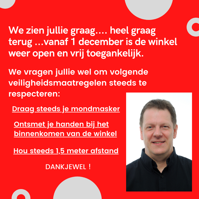 Home » We zien jullie graag.... heel graag... terug ...vanaf 1 december is de winkel weer open en vrij toegankelijk